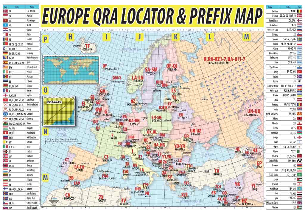Európa prefix és QRA lokátor térkép (falitérkép)