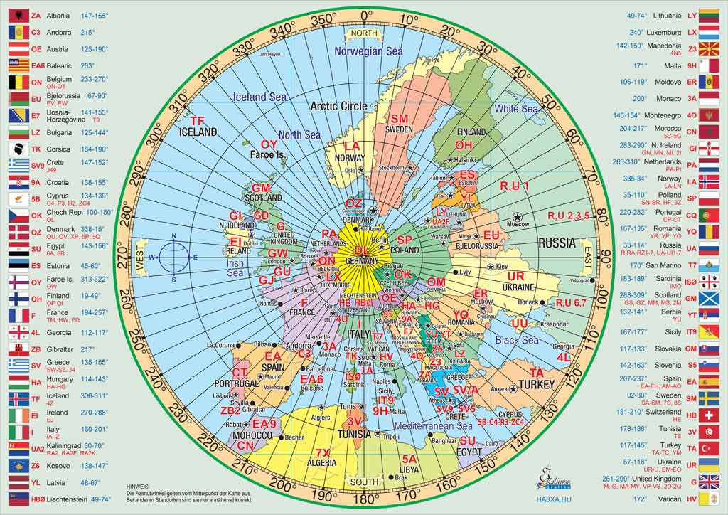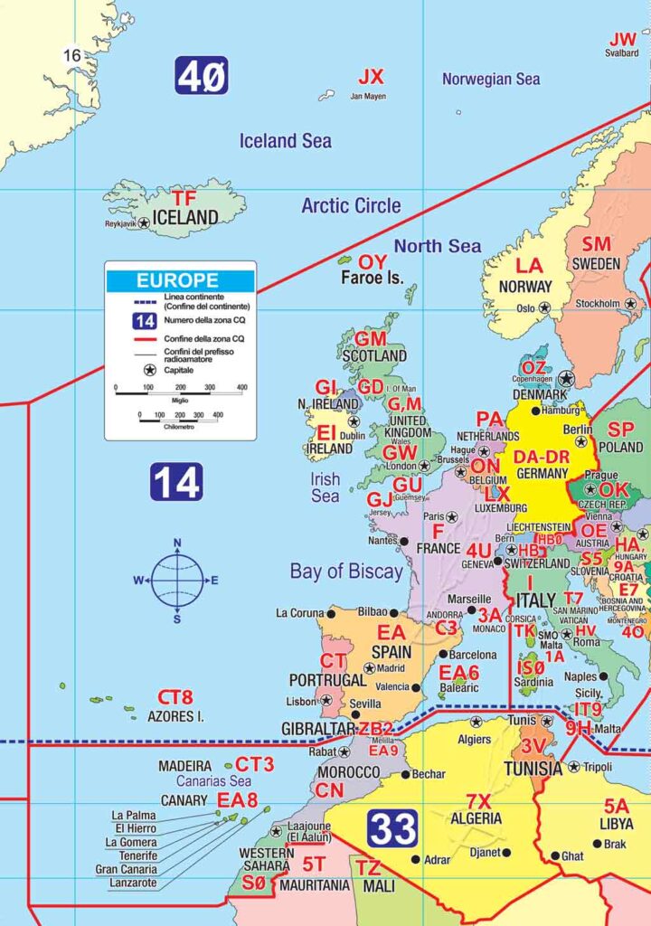 e.g. Caribbean region, Japan, etc. - Country prefix list with continent and zone designation
